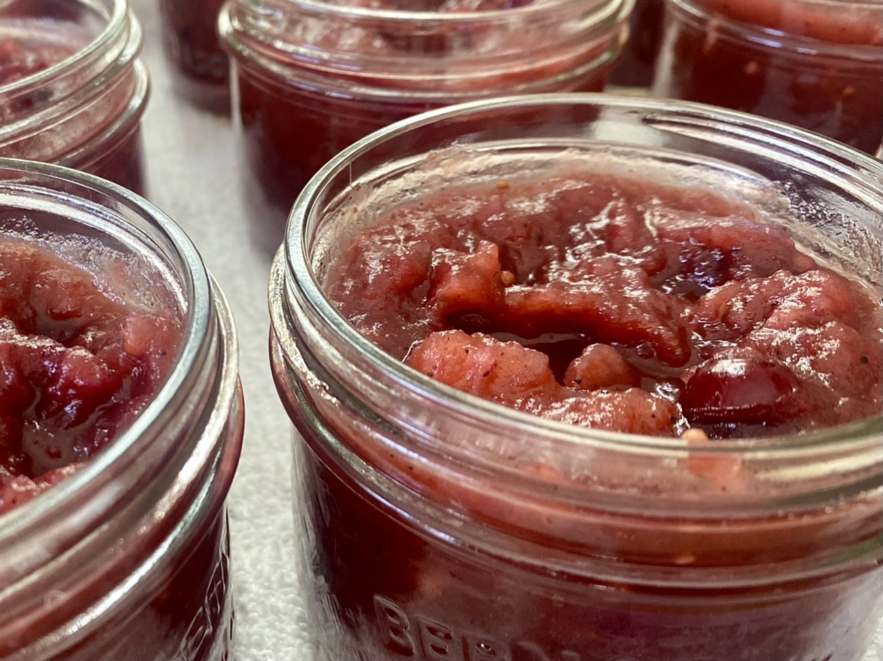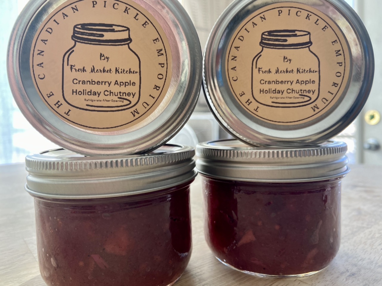 Ingredients: Local MacIntosh apple, local cranberry, onion, brown sugar, apple cider vinegar, water, garlic, ginger, whole peppercorn, yellow mustard seed, cumin, garam masala, allspice, chili powder, sea salt, bay leaf